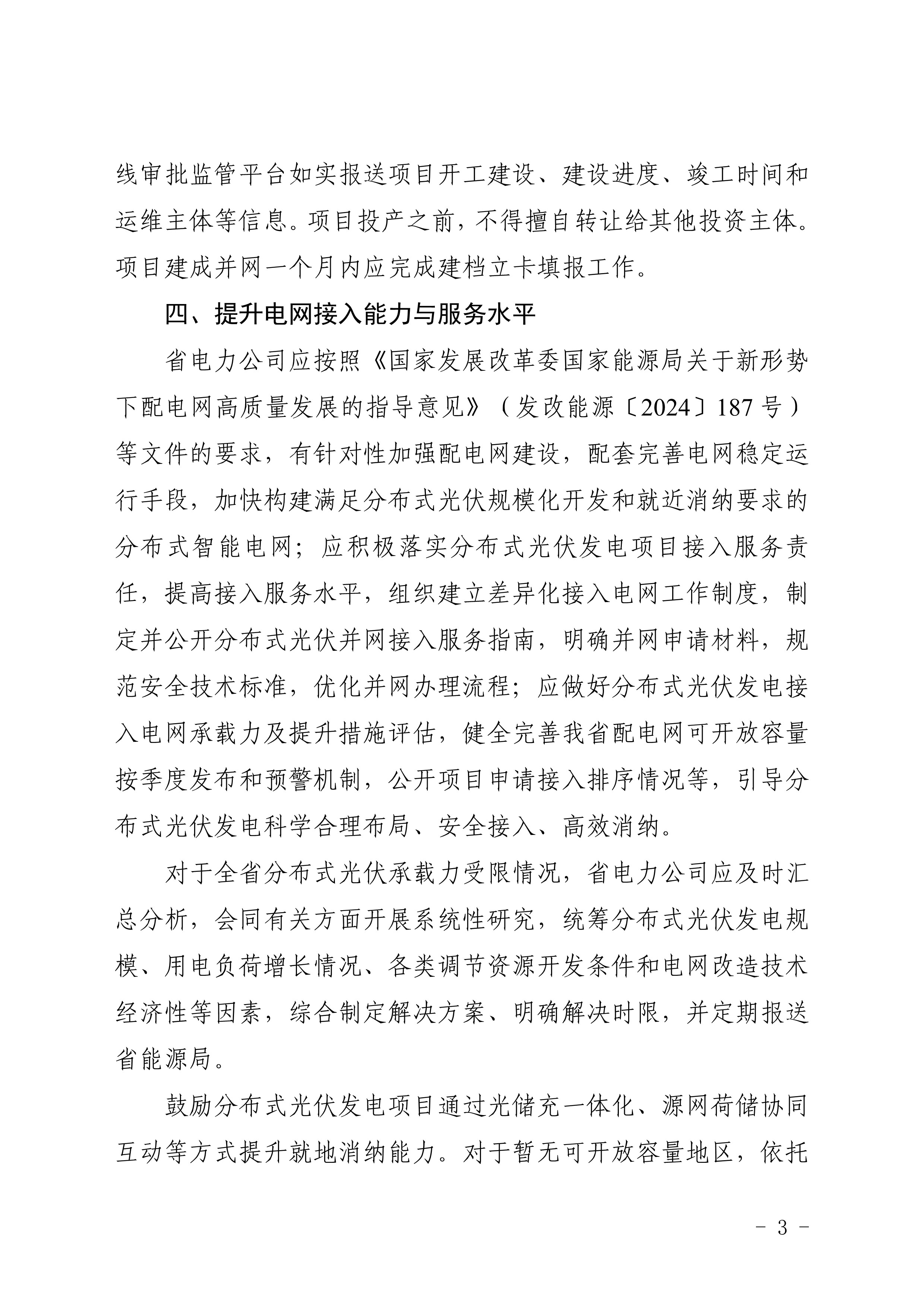 文件提出,在负荷方面,鼓励分布式光伏发电项目通过光储充、源网荷储协同互动等方式提升就地消纳能力。对于暂无可开放容量地区,依托存量负荷建设的分布式光伏发电项目,在通过加装储能设施满足相关要求前提下,可由电网企业评估后并网接入。依托新增负荷建设的全部自发自用分布式光伏发电项目,不受可接入容量限制。