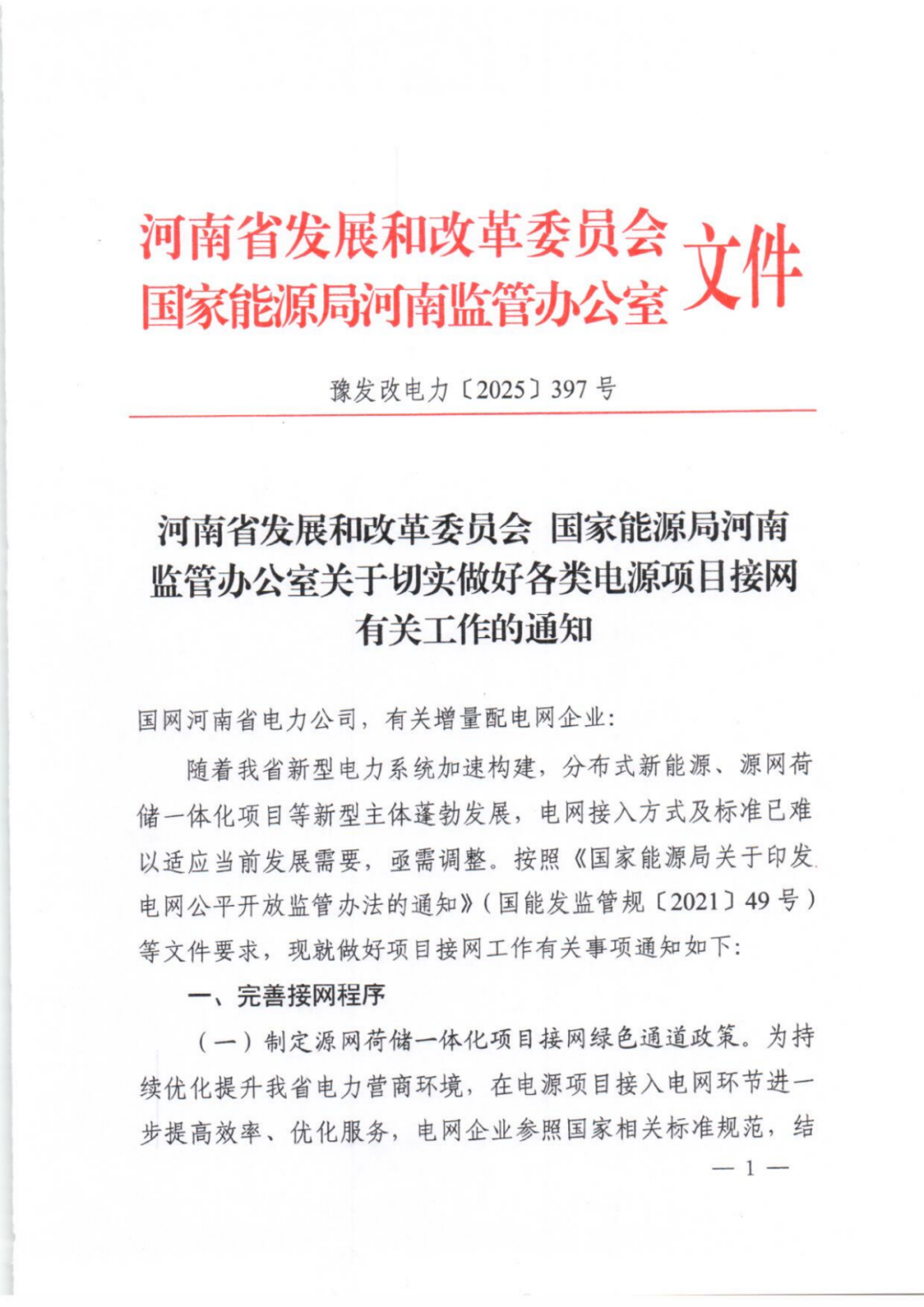 河南:制定源网荷储一体化项目接网绿色通道政策