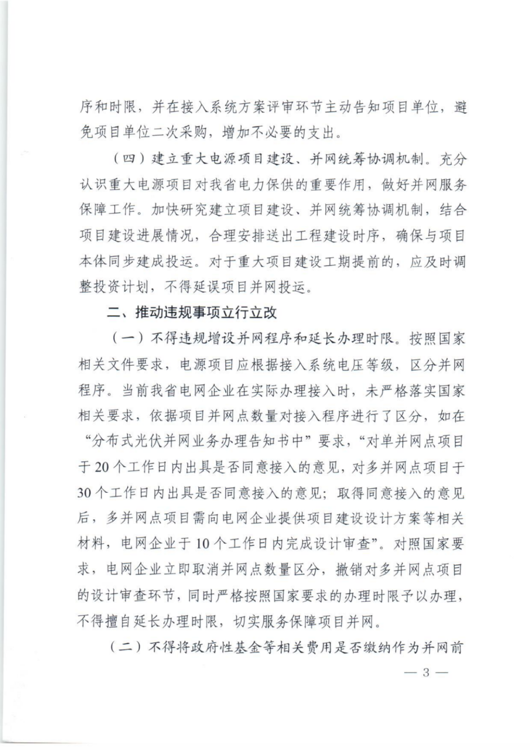 通知还指出,要推动违规事项立行立改。不得违规增设并网程序和延长办理时限;不得将政府性基金等相关费用是否缴纳作为并网前置条件。