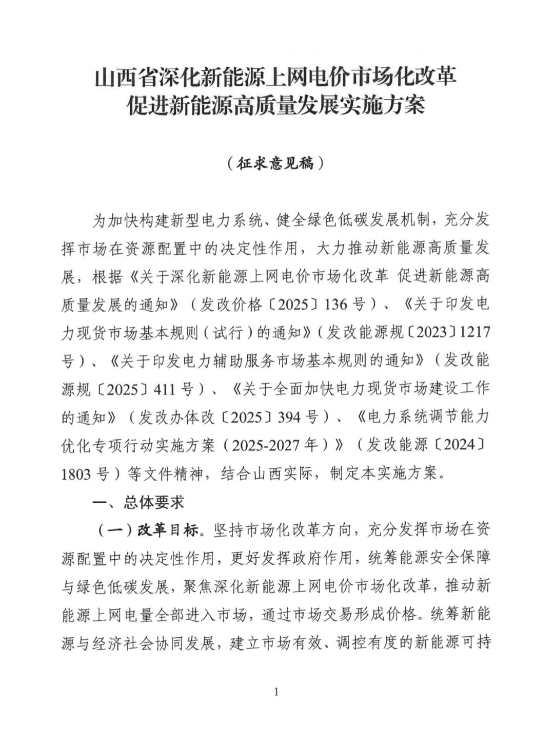 山西省发改委下发关于征求对《山西省深化新能源上网电价市场化改革促进新能源高质量发展实施方案(征求意见稿)》意见建议的函。