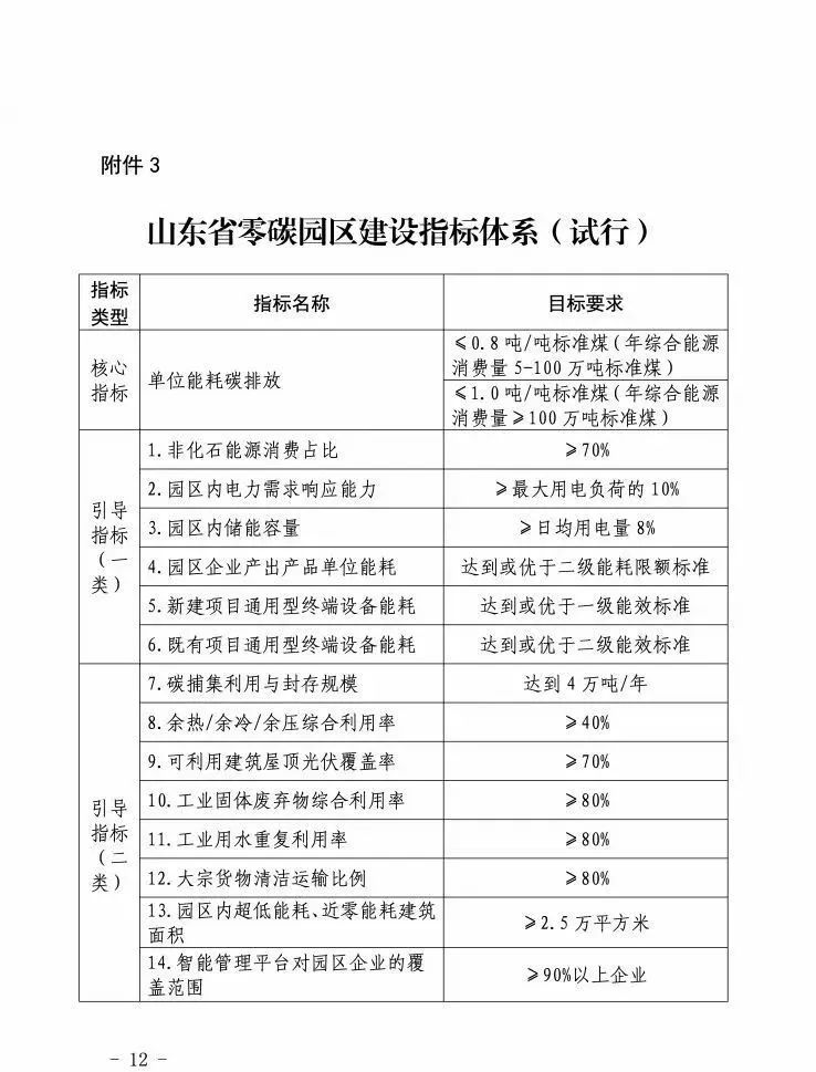 附件3山东省零碳园区建设指标体系(试行)中的一类指标(必选指标)规定,园区内储能容量≥日均用电量8%。
